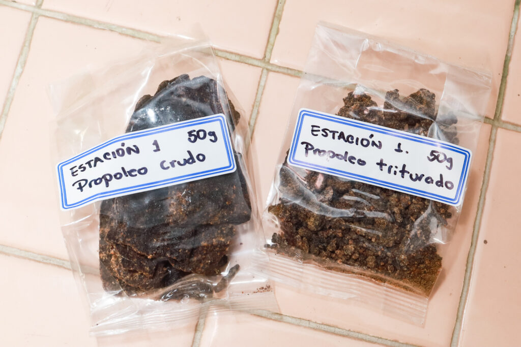 Cuando el recolector está cubierto de propóleo se cosecha, utilizando navaja de acero inoxidable para extraer el propóleo; esto se realiza cada quince días, dependiendo de la cantidad recolectada.