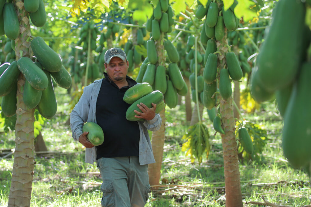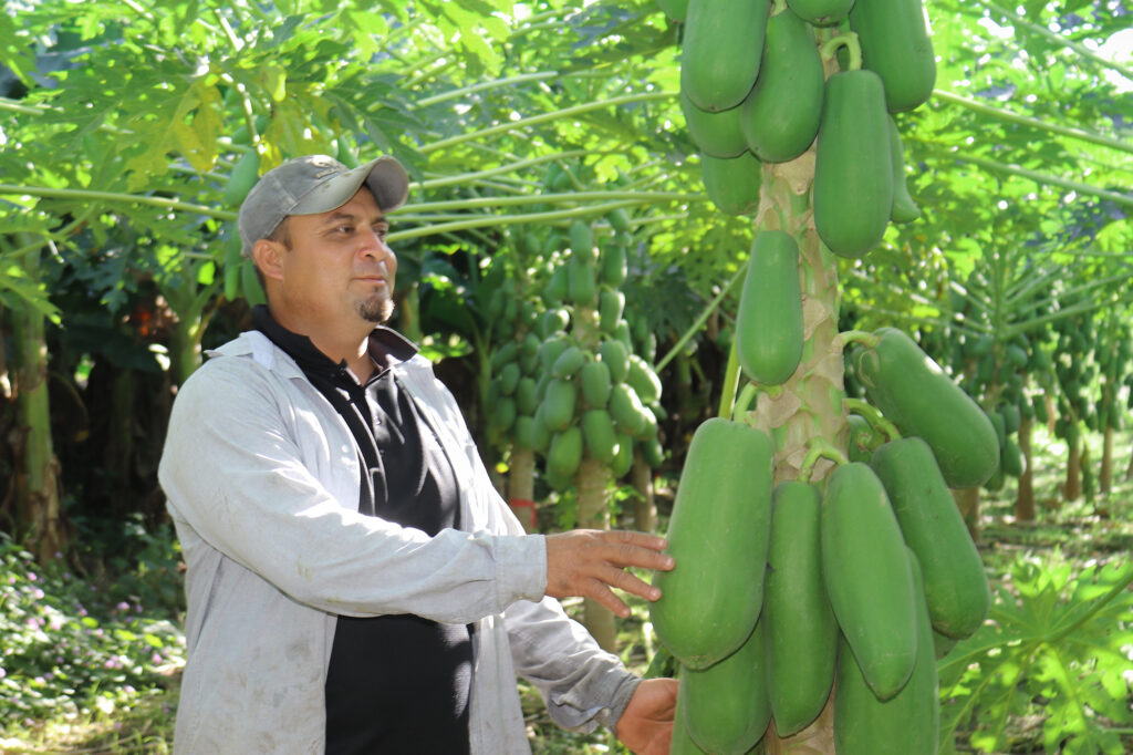 Gracias a su espíritu emprendedor y visionario, en mayo del 2023 decidió apostarle al rubro de la papaya Passion Red, adquirió 500 plantines y con la orientación del extensionista preparó el terreno y sembró. “Desde hace mes y medio he comenzado a comercializar, tengo un comprador fijo que viene desde San Miguel y las vendo por docenas a $10 dólares, también tengo compradores a nivel local que vienen hasta mi parcela y las adquieren al menudeo”, explicó el productor.