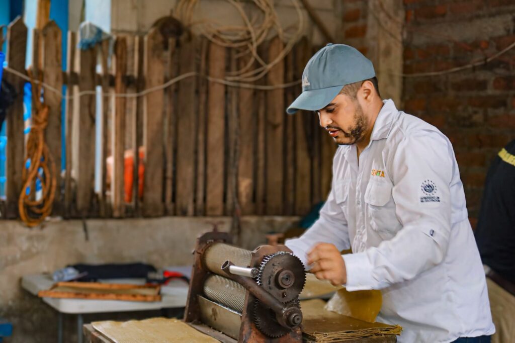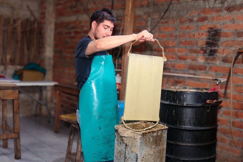 Manuel detalla que la mejor temporada para el proceso de las láminas de cera estampada está entre los meses de noviembre a marzo, donde los productores se preparan para el trabajo de la producción de miel.