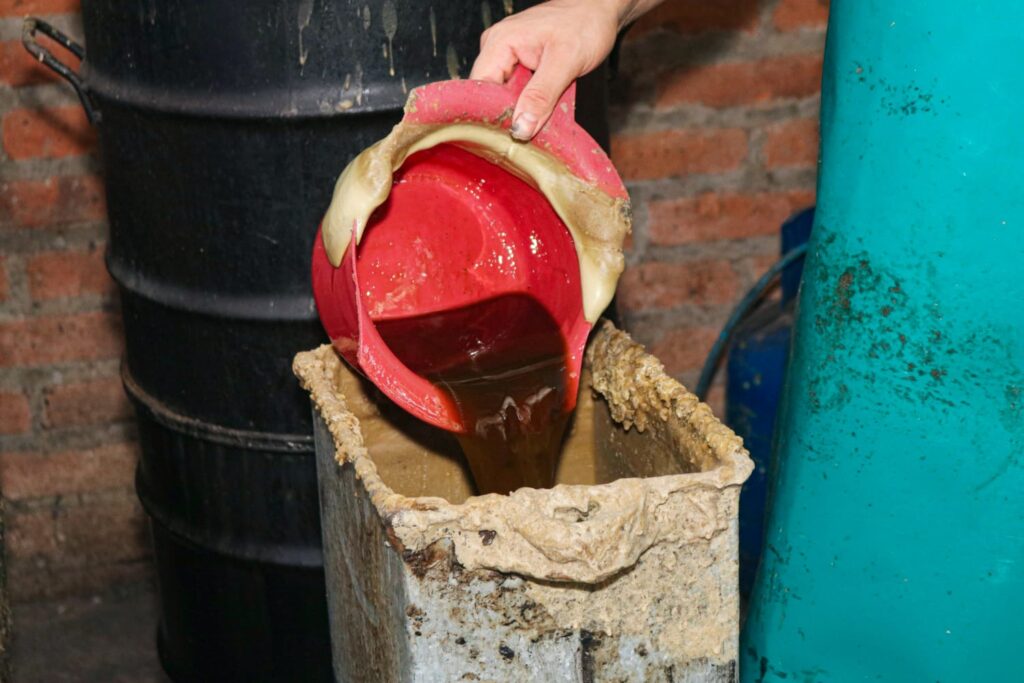 “El fundido de cera no es recomendable hacerlo con leña porque se ahúma el material, con gas es mejor debido a que no sale contaminado el producto y la temperatura es uniforme para lograr sacar las láminas de cera estampadas y dar a las abejas un molde para que la cera que van a estirar sea del diámetro correcto para la producción de más abejas obreras” detalló el apicultor.