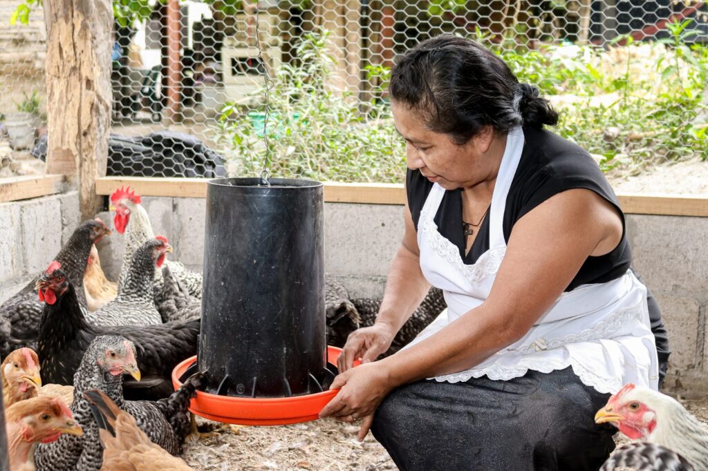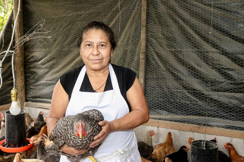 María Gutiérrez, Yessenia Merino y Rosa Sánchez, son madres y productoras que no tenían conocimientos sobre el cuido de razas de gallinas de doble propósito y pollos de engorde, quienes aseguraron su emprendimiento al unirse con el proyecto Fideicomiso Especial del Sector Agropecuaria (FIDEAGRO) y recibir acompañamiento técnico del Centro Nacional de Tecnología Agropecuaria y Forestal (CENTA) a través de la agencia San Pedro Nonualco, para lograr obtener carne o huevo para su venta y consumo.