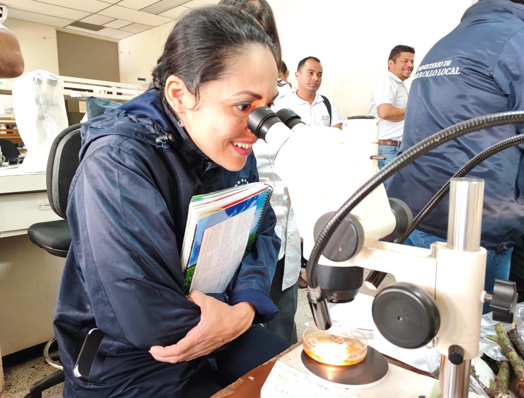 Técnicos de la Gerencia de Asistencia Alimentaria, del Ministerio de Desarrollo Local, realizaron una visita por los laboratorios de Parasitología Vegetal y Tecnología de Alimentos del Centro Nacional de Tecnología Agropecuaria y Forestal (CENTA) con la finalidad de conocer cómo identificar micotoxinas en los alimentos y la incidencia que tienen en la salud humana y animal.